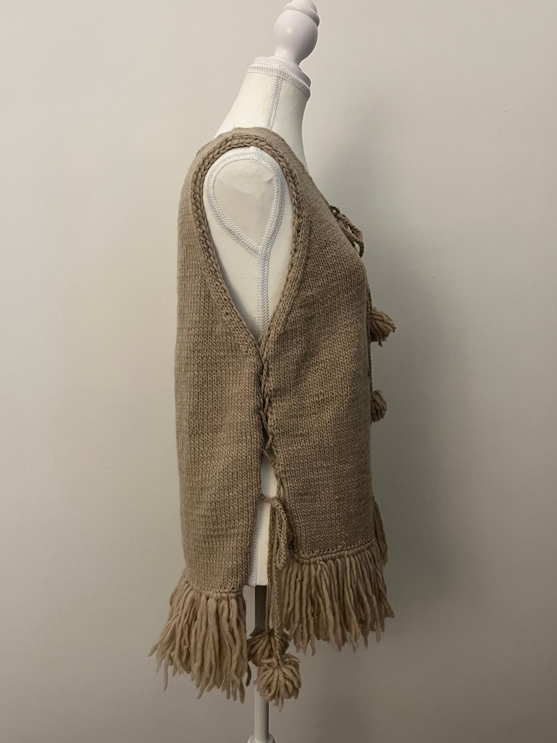 The J. Peterman Company Sleeveless Alpaca Wool Sweater w Side Ties & Fringe - Small